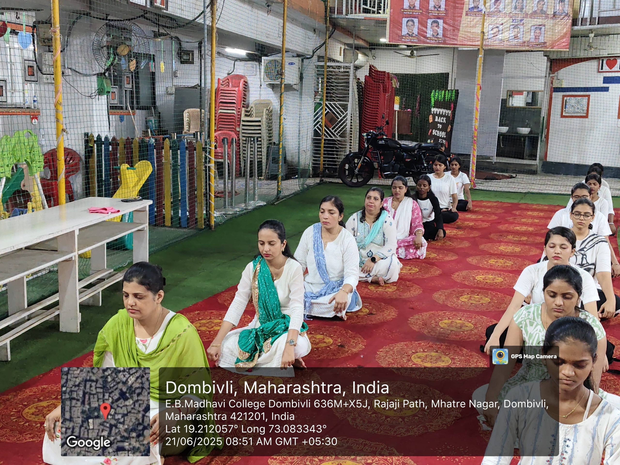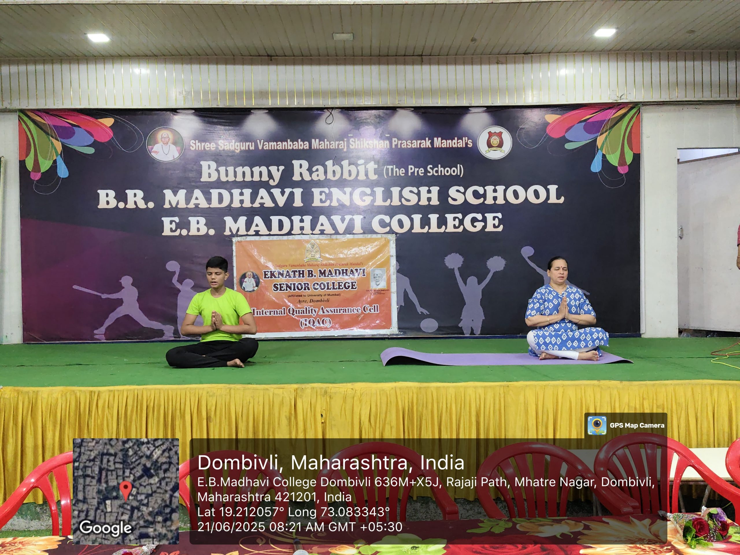 International Yoga day was celebrated by E.B.Madhavi Senior college of Arts, Commerce and Science on 21st June 2025 with great enthusiasm. Respected Principal Dr.O.N.Nair Sir and vice Principal Dr.Sonali Sathe Madam participated in the celebration.This year the theme for yoga day is ” Yoga for one earth, one health”. A team of Swami Vivekanand kendra, Kanyakumari, Dombivli Branch was invited for conducting yoga session.Yoga session started at 8.00 am .The yoga trainers demonstrate various assanas.These assanas were performed by students and teachers enthusiastically.The session ended at 9.15 am.