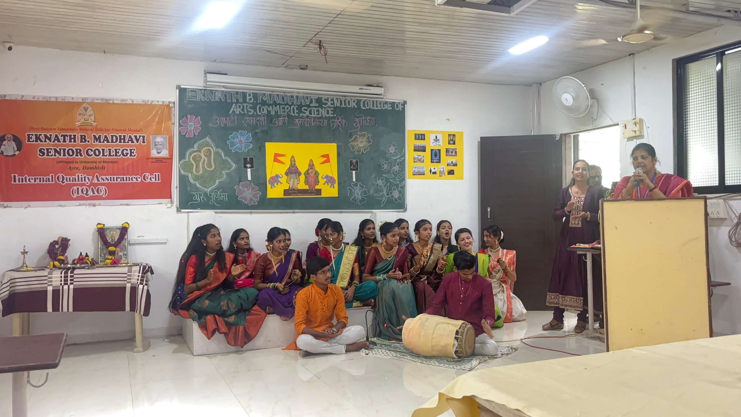 To honor the teachers, E.B.Madhavi senior college, IQAC committee along with cultural committee organized the occasion of Guru Purnima on 16th July, 2022. The function took place in the seminar hall. The programme started on schedule by 9.00 a.m. The occasion was graced by the presence of the Principal Dr. O.N.Nair Sir, vice Principal Prof. Sonali Sathe Madam and Primary Principal Mrs. Varsha Puranik Madam and other teaching staff. The function began with a prayer .After that, all the dignitaries are welcome by giving floral bouquet. A team of students presents flowers to all the teachers on the auspicious occasion of Gurupurnima. The function was earmarked with beautiful cultural performances. First of all, the students performed a beautiful group dance. It’s a mesmerizing performance. Many students delivered the speeches in which they expressed views about the role of Gurus in their lives. In the programme some of the students sung Guru Stuti and Aarti. All these, highlighting the Gurus role in shaping the students life. One of the group of the students present Bharud. It is a very old poetic form. This art form is an educative as it is enjoyable. Bharud performance got a huge round of applause from all. All the dignitaries showered their blessings on the students by the pearls of wisdom. Our honorable principal sir encouraged the students to work hard if they want to make a strong and good career in life. He sung a melodious devotional song which spread a positive vibes among all. The whole function had a variety of programmes which was liked by everyone.