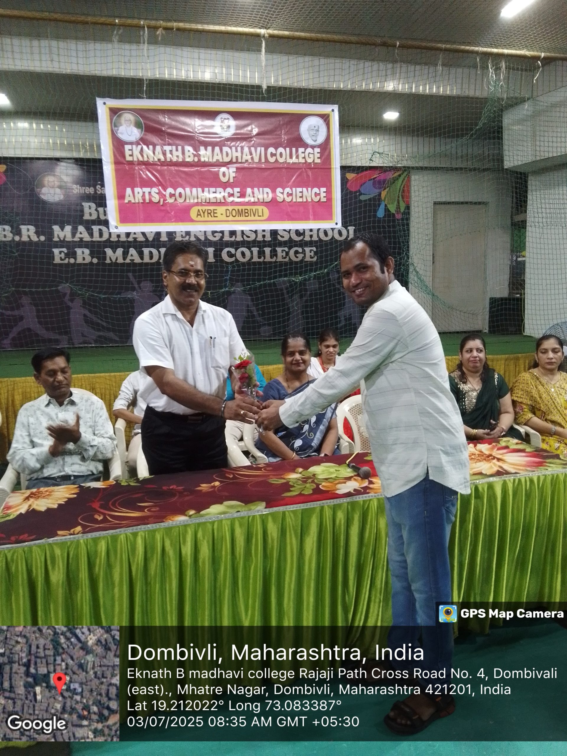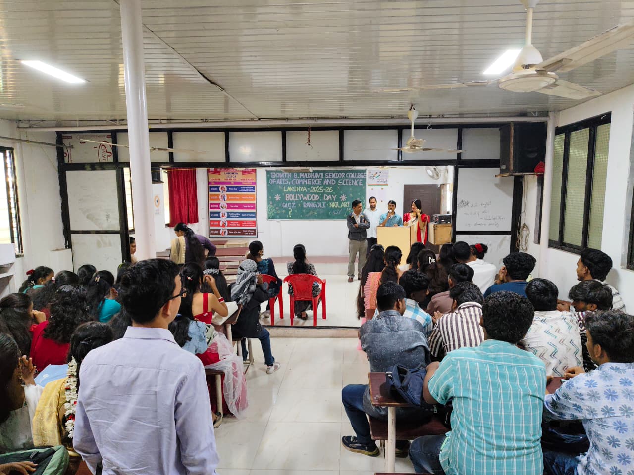 E.B.Madhavi Sr. College organised an orientation programme for first year students of Commerce,Arts and B.Sc.IT streams on 3rd July 2025.The event began at 8.00 am.and was held at the college campus. The programme was graced by the presence of the principal, vice -principal , Teaching and Non-Teaching staff, who welcomed the new students. The session included an introduction to faculty members, an overview of syllabus, examination pattern and extracurricular activities. Students were encouraged to participate actively in both academic and co- curricular activities.During the session students took an oath that emphasized the importance of hard work and sincere efforts.The programme concluded with a vote of thanks.
